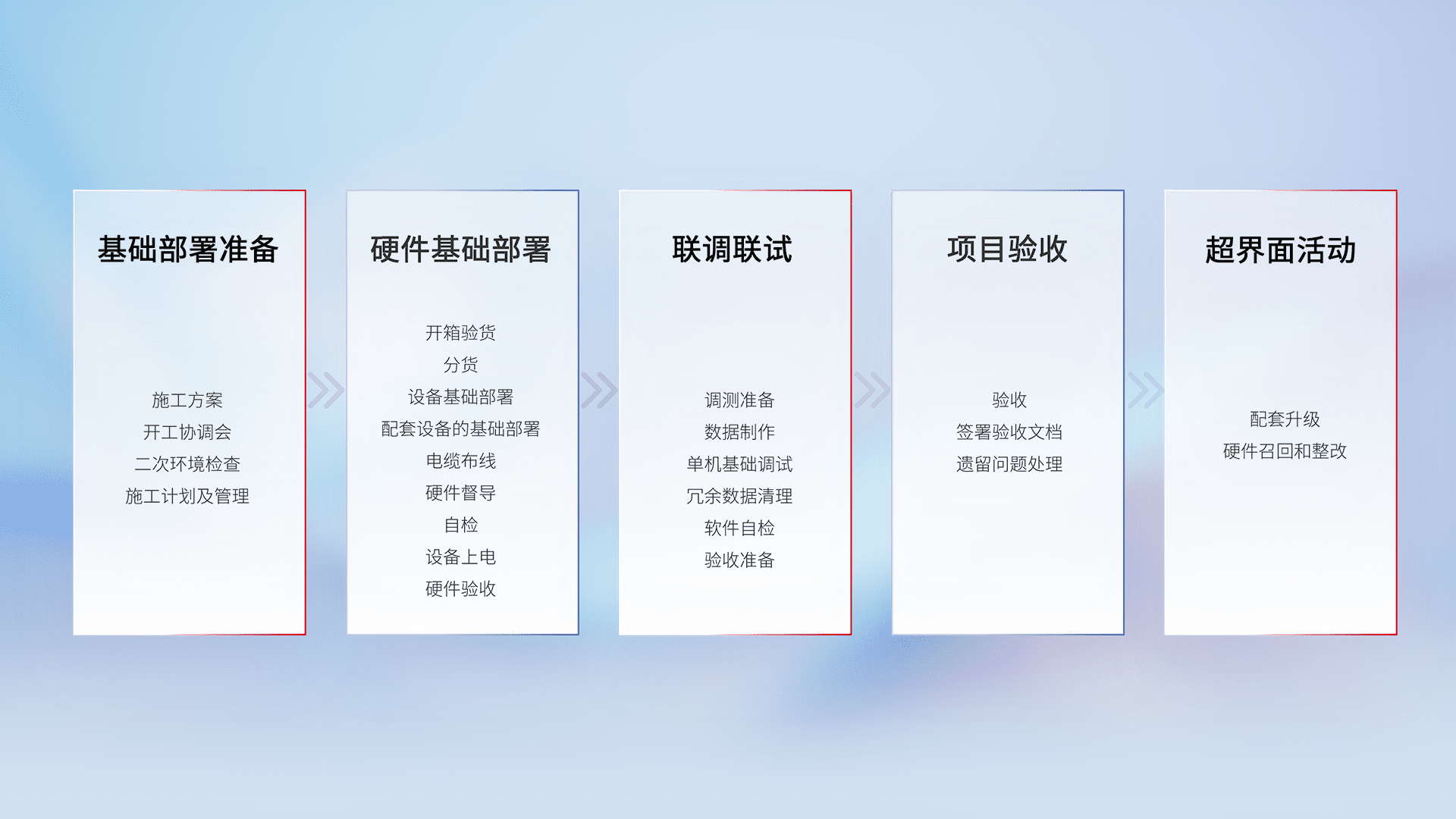 从基础部署准备、、、、硬件基础部署、、、、联调联试、、、项目验收、、越界面活动的全过程可追溯,,保证施工质量和进度。。。。